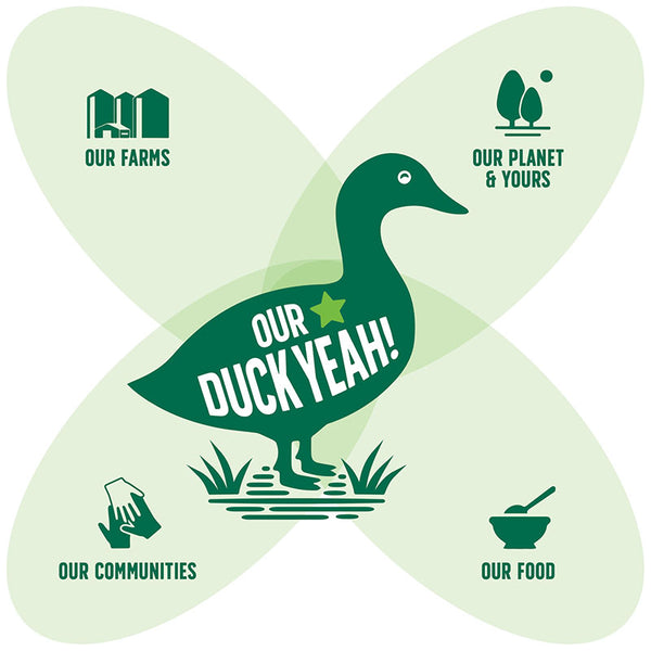 We're on a mission to not only minimize our footprint, but to make our Farms, Planet, Communities and Food better than before, from developing new varieties of rice to rescuing duck eggs by hand. That’s why we call this our Anti-Impact Report. And where it all comes together? That’s our duck yeah!