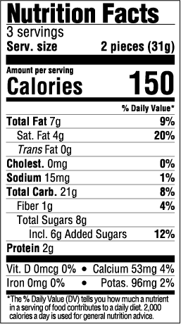 Ingredients: *White Chocolate (*Cane Sugar, *Cocoa Butter, *Whole Milk Powder, *Soy Lecithin, *Vanilla Extract), *Brown Rice, *Cocoa Butter, *Poppy Seeds, *Lemon Oil.