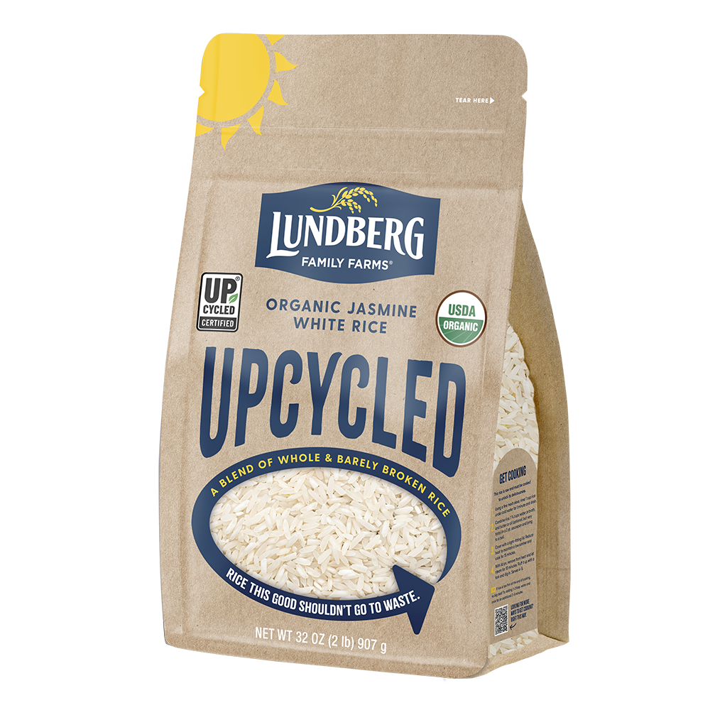 Food waste? Not on our watch. Because when we hear that nearly 30% of the world's food supply goes to waste, well that really ruffles our feathers. So we're doing our part to keep this high quality premium Organic Jasmine rice on your plate by blending upcycled barely broken rice kernels with whole rice kernels. The result is the same great tasting Lundberg rice you love to love. Not bad for some 'broken' rice.