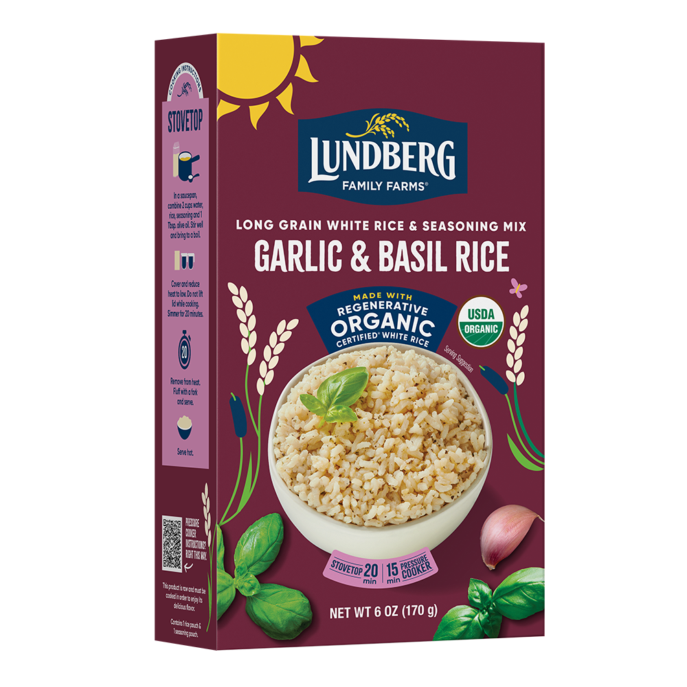 This savory, herby rice is blow-your-mind good. Our signature recipe uses Regenerative Organic Certified® long grain white rice seasoned with garlic, onion, basil, and parsley.