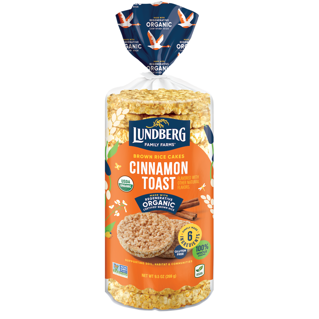 Carefully crafted to be thick, crunchy, and full of flavor, Lundberg Organic Brown Rice Cakes are good from the grain up so you can enjoy them piled high with your favorite toppings or straight out of the bag. We recommend serving our Organic Cinnamon Toast Rice Cakes with peanut butter, bananas, and raspberry jam.