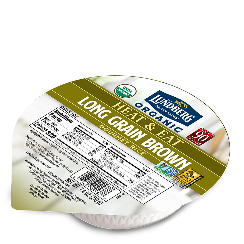 Lundberg Ready to Heat rice is specially crafted to be the perfect side dish or dressed up with your favorite ingredients. Add your favorite protein and veggies to turn our Organic Long Grain Brown Rice Bowl into a quick meal!