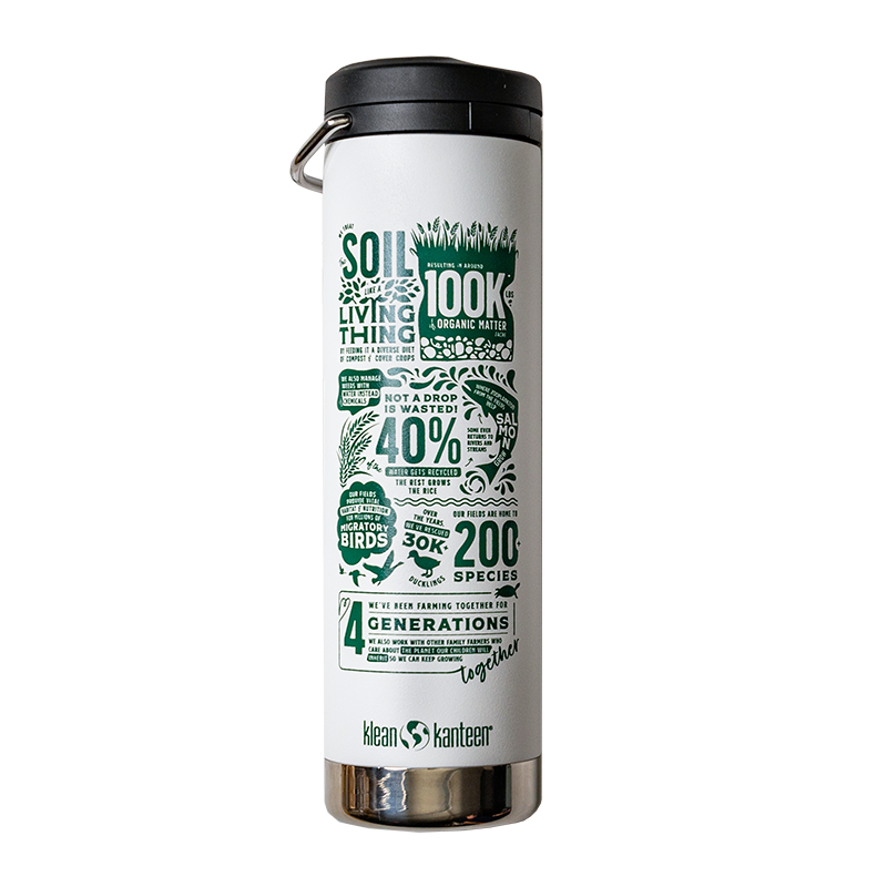 This limited edition 20oz Klean Kanteen TKWide Insulated Bottle celebrates Lundberg's commitment to regenerative organic farming practices.